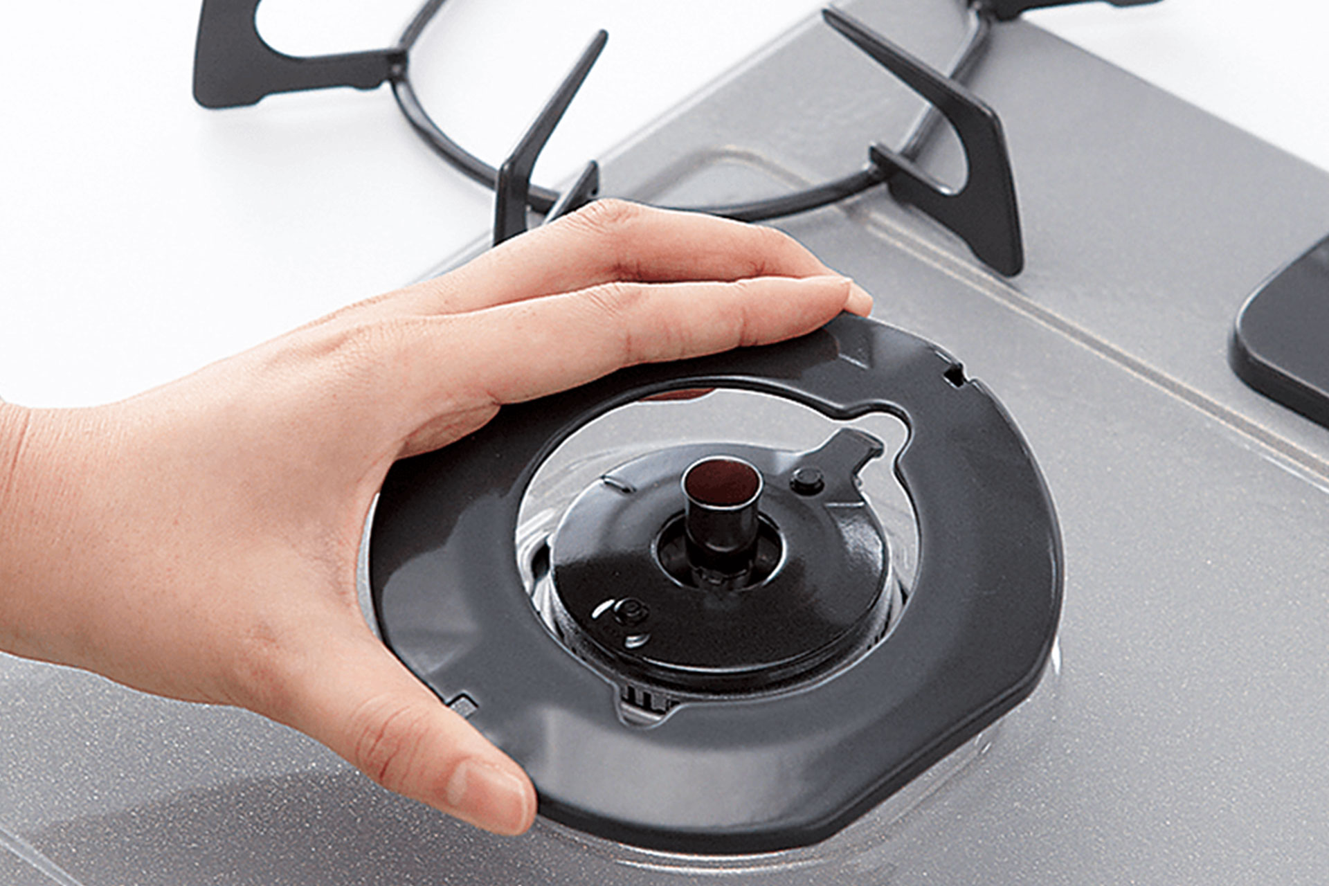 カバーリングは汁受け皿をなくし、バーナー周りはカバーリングが煮こぼれをしっかりカバーします。取り外して洗えるので、お手入れがスムーズです。